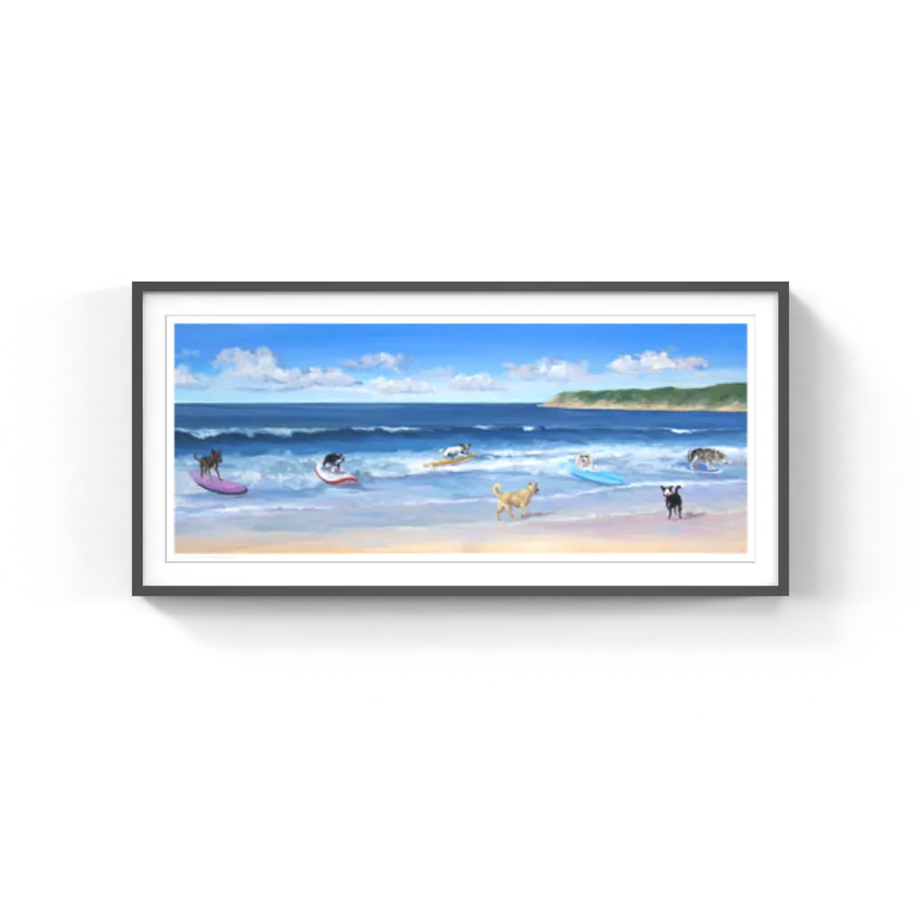 Hot Dogs Surf by Carol Saxe Wall Art Décor 8 1/2 x 20 1/2 Art Print