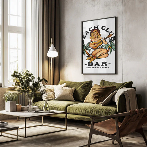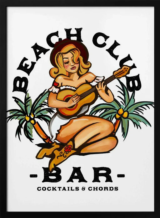 View full detailsSailor Jerry Style Pin-Up Girl Playing Guitar - Framed 24x36 Beach Club Bar Art for Home or Office