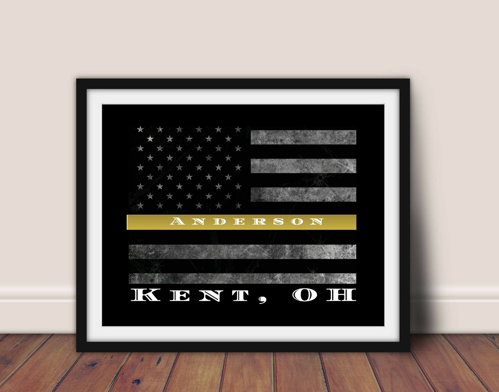 The Thin Yellow Line Flag is designed for security guards and tow truck drivers, featuring a durable and eye-catching design. It includes personalized artwork with your last name and the year you began your service, making it a meaningful tribute to your dedication. Measuring 11x14 inches, it fits perfectly in a 14x18 frame for easy display in your office, home, or vehicle. This bold design symbolizes respect and recognition for those who protect and serve their communities. If you have any questions or need assistance, please reach out to us.