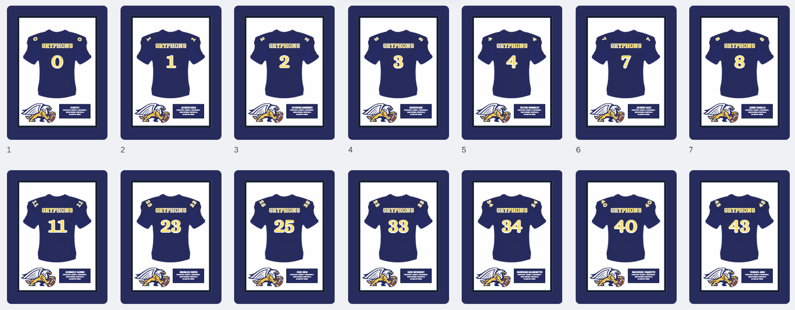 Greater Lowell Technical High School Football - 18x24 jersey frames 23 Frames