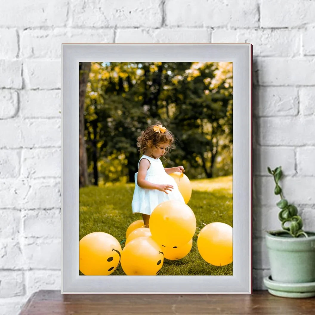 • Sleek, Contemporary Design: Featuring a modern flat profile, this custom frame is adorned with a luxurious, silver finish, adding a touch of elegance to your decor.