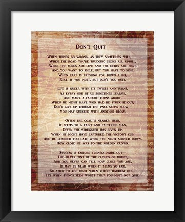 This wall art Don't Quit Poem print is created by top quality printers for your home wall art with vivid art prints and canvas colors. Quality Modern Memory Design art print are perfect gallery wall made in our New Jersey frame shop for you. Choice art print, stretched canvas or framed art for your wall decor