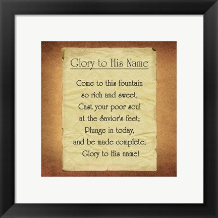 This wall art Glory To His Name print is created by top quality printers for your home wall art with vivid art prints and canvas colors. Quality Veruca Salt art print are perfect gallery wall made in our New Jersey frame shop for you. Choice art print, stretched canvas or framed art for your wall decor