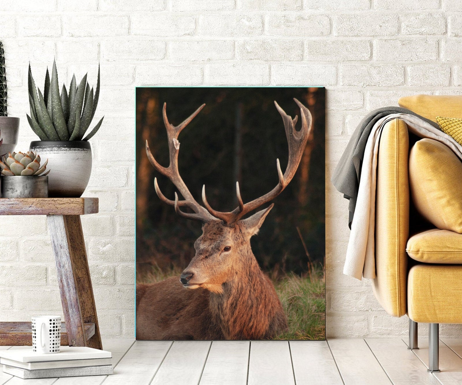 Turn your home wall into a work of art with this deer antlers canvas art print. This high-quality canvas wall art print will complement any room in your home. Handcrafted in the Lodi, New Jersey, this artful image is printed on an artist-quality canvas using UV-resistant archival inks. Ready to hang once delivered, this piece arrives fully assembled streched on wood bard ready for wall-mounting on your wall.