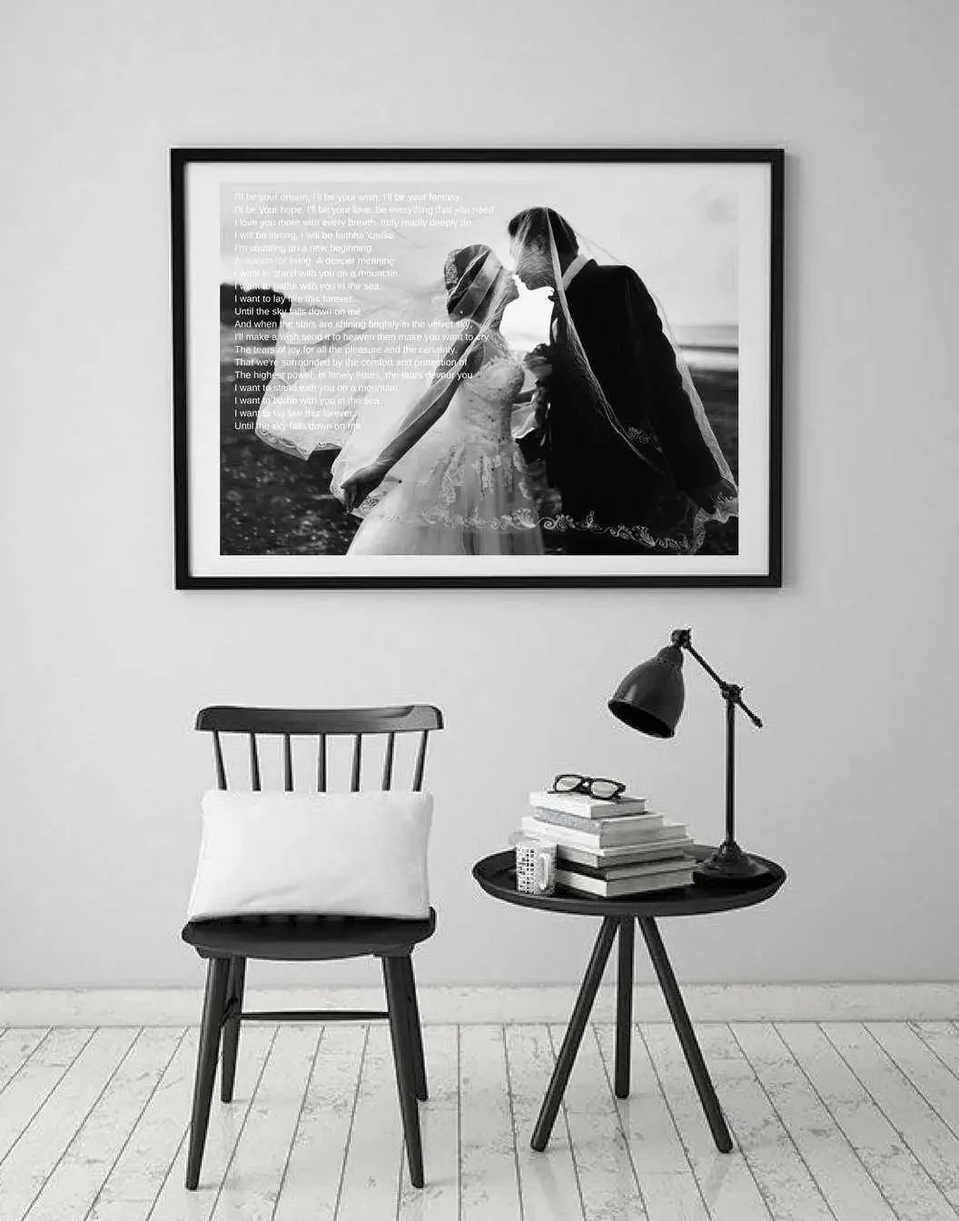 Lifestyle and Versatility Transform the bare walls of your home into a captivating gallery of your love story. This song lyric print blends seamlessly with modern or classic décor styles, making it a perfect addition for newlyweds, established couples, or as a thoughtful wedding welcome sign. Celebrate your journey together with art that is as unique and enduring as your bond.