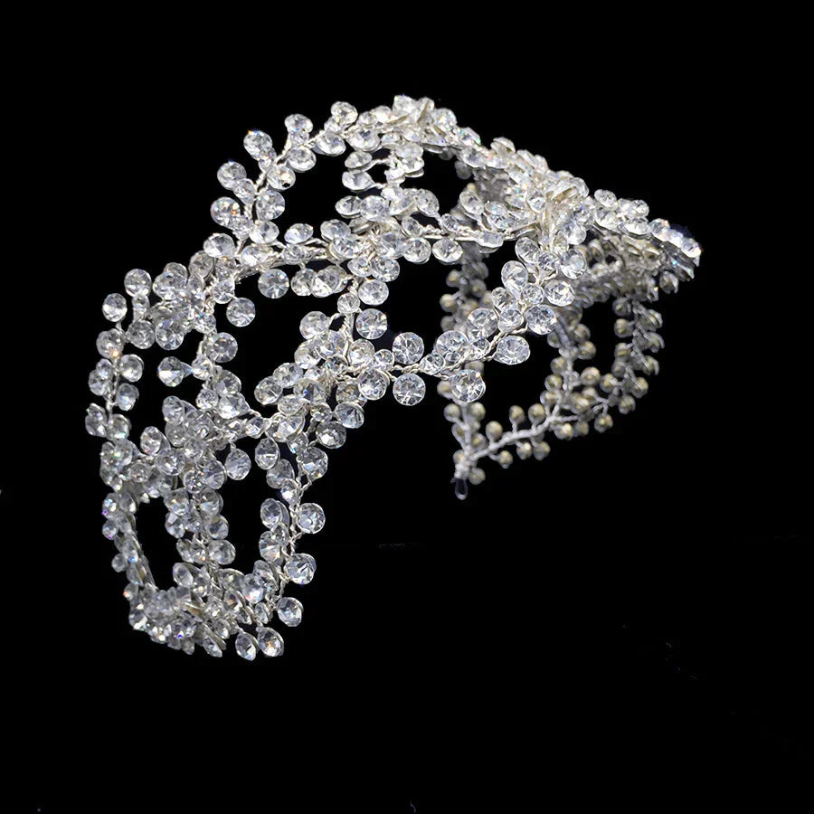 Handmade hair piece for wedding bride to be. Wedding headpiece is made from rhinestones, beads and braided all together with silvery alloy wire
