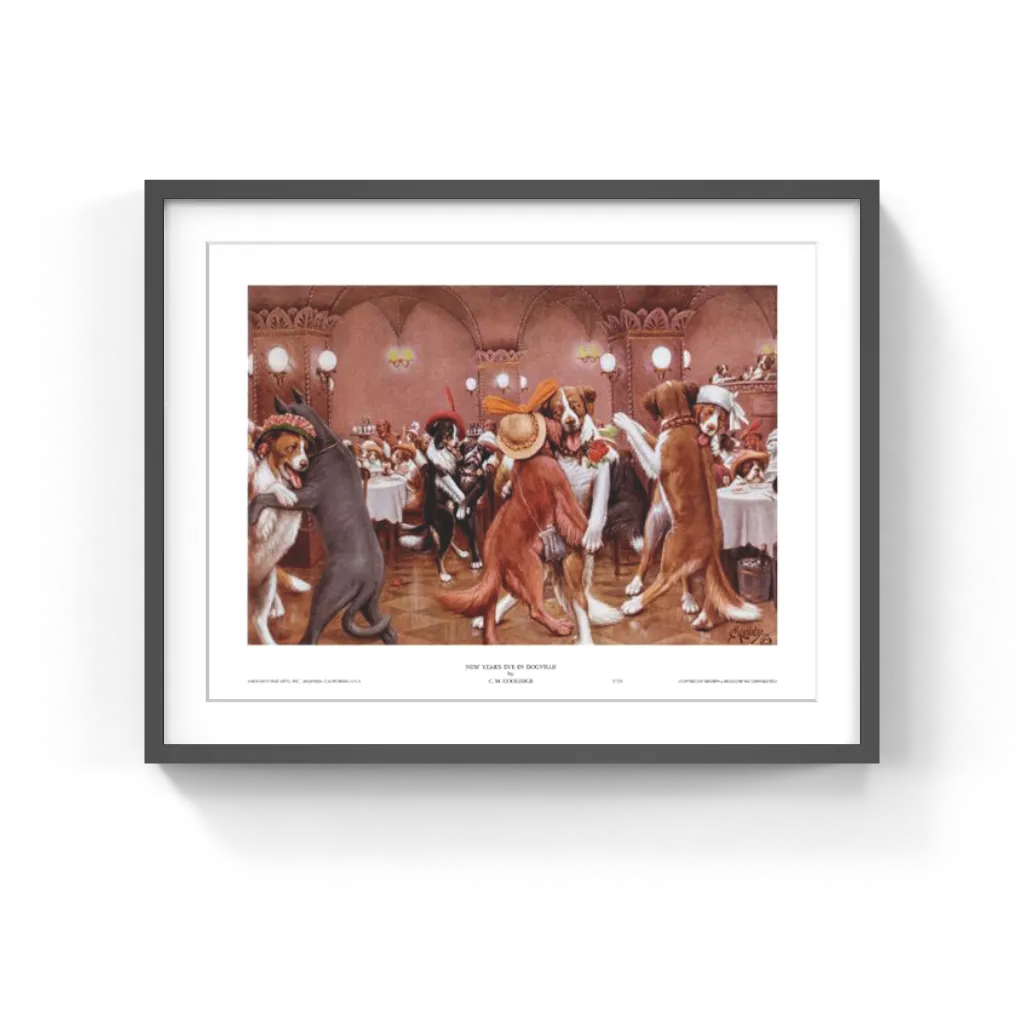 New Year's Eve in Dogville by C.M. Coolidge Wall Art Décor 12 x 16 Art Print